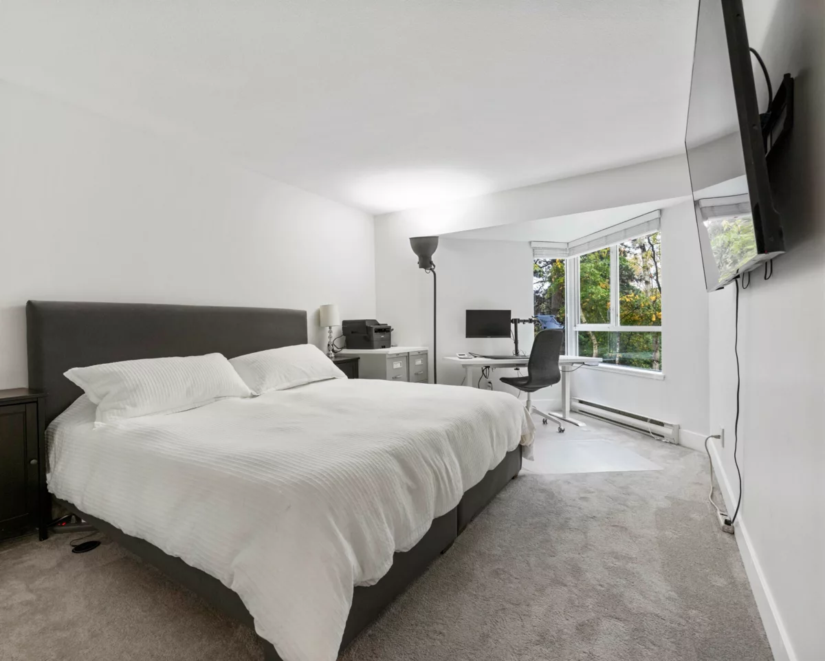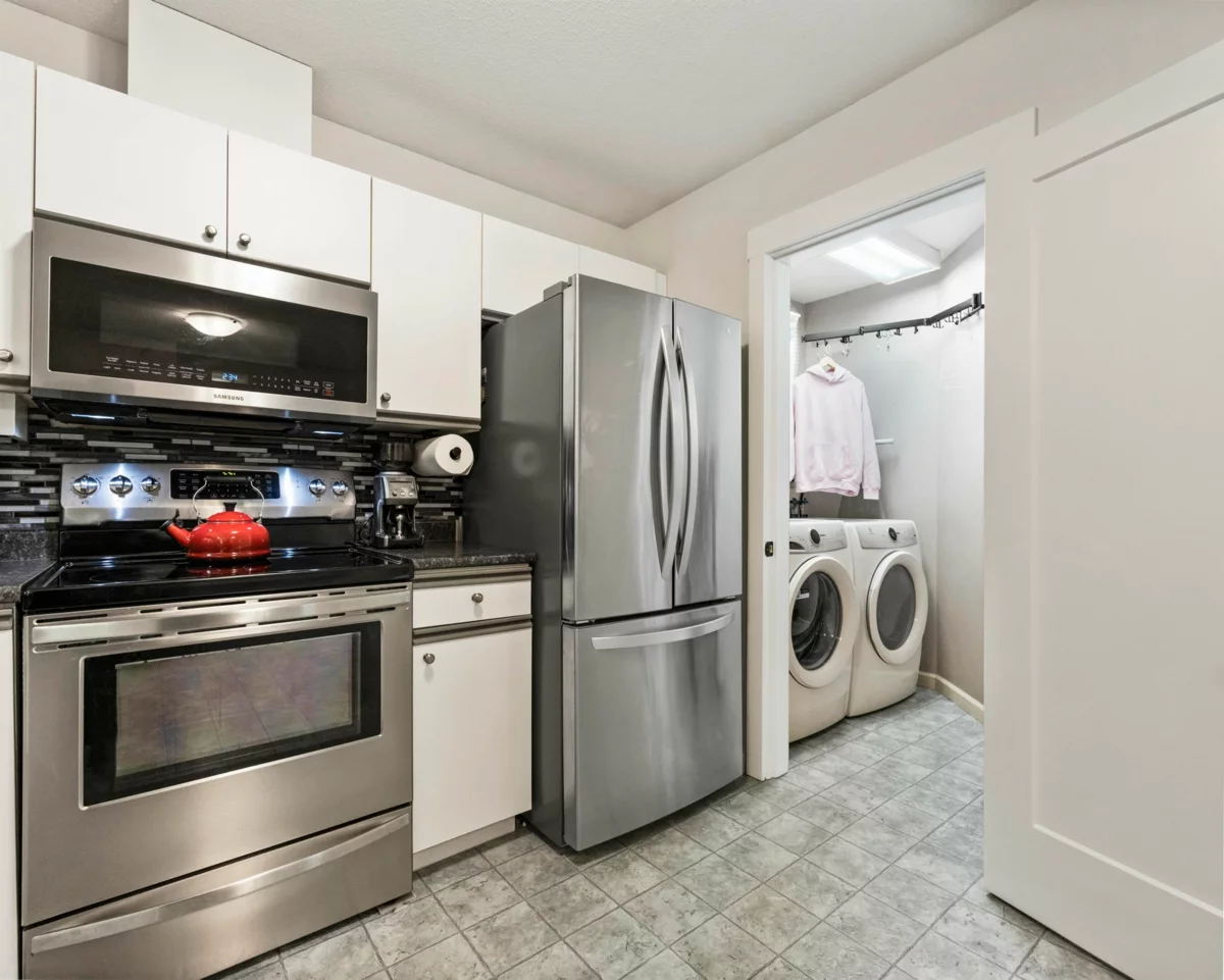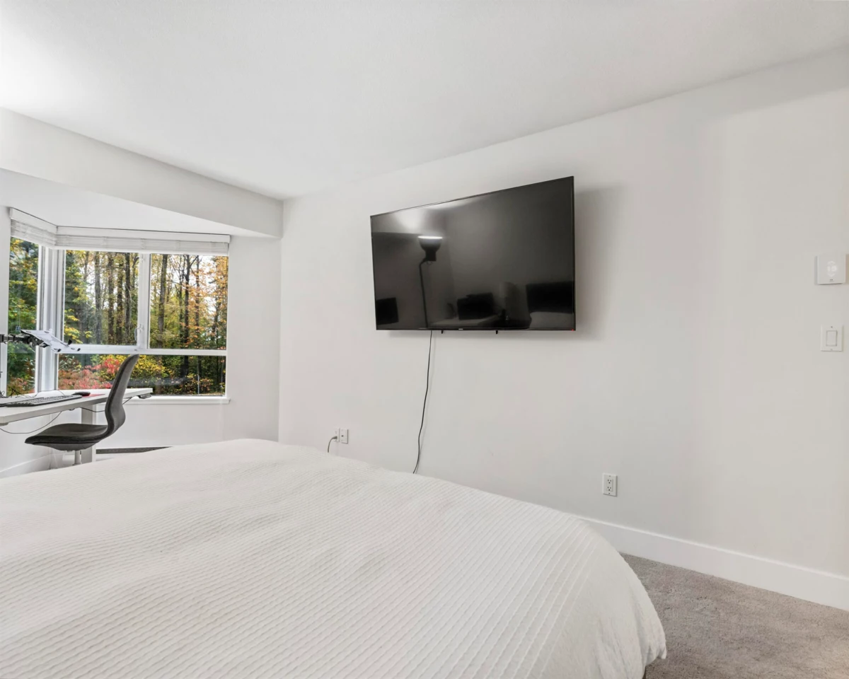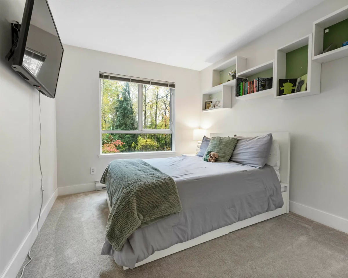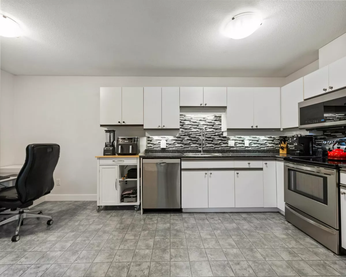 Discover this rarely available end-unit, two-level, south-facing, duplex style townhome tucked beside peaceful green space, offering the perfect balance of nature & city living. Bright, beautifully maintained, & move-in ready 3 BR, 3 bath home. Step inside to a spacious, light-filled LR with a cozy gas fireplace - perfect for relaxing evenings. The open DR area leads to a private 200SF patio, ideal for year-round outdoor enjoyment. Upstairs the expansive primary suite features a large ensuite and generous closet space and the 2nd BR & full bath. Downstairs, you’ll find a large 3rd BR & a full bath. The oversized (547SF) side-by-side double garage offers plenty of room for storage/workshop. This complex is located close to schools, parks, shopping, and transit. Don’t miss your chance.