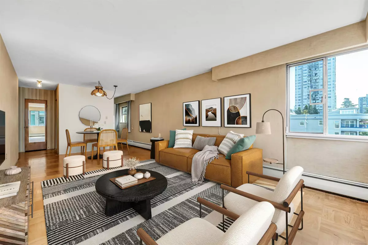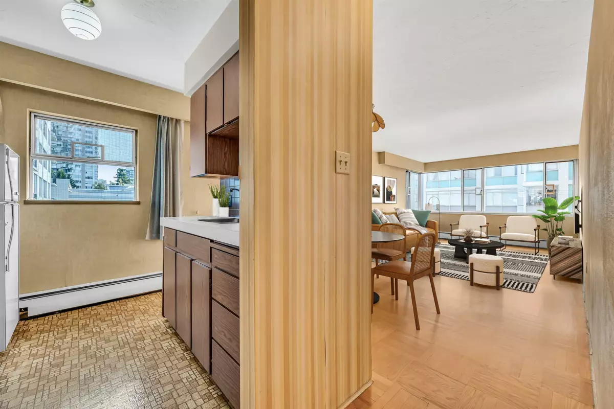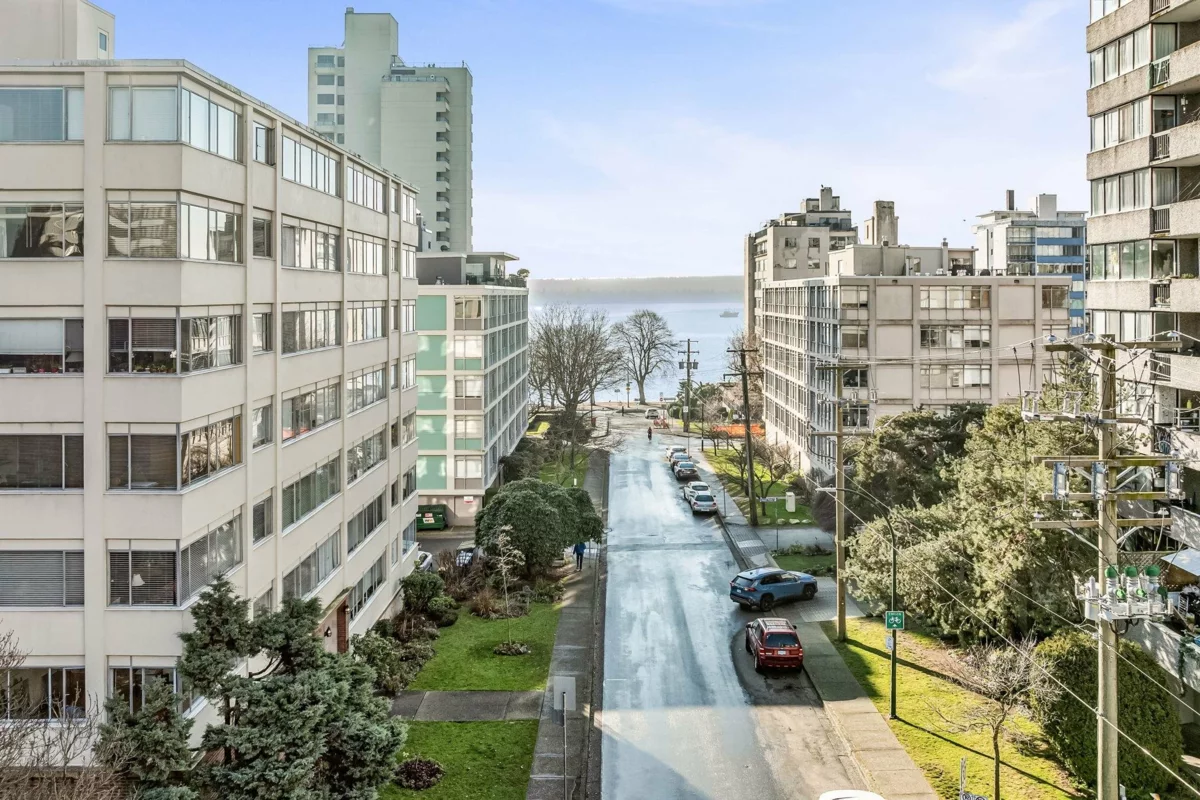 Experience the best of West of Denman living! This bright, corner south/west-facing 1-bedroom suite is full of natural light and ready for your ideas. Easily converted to a junior two-bedroom, this home accommodates house-sized furniture, including a king-sized bedroom. One block from the beach, seawall, and Stanley Park, and surrounded by shops and cafes in a charming, tree-lined neighbourhood. Unbeatable value per square foot for freehold land in this prime location. Solid concrete construction, updated elevator, roof, boiler, and piping. Enjoy free shared laundry and a sun-drenched common rooftop deck with gorgeous English Bay views. 35% down. Adult-oriented building (19+), 100% owner-occupied—no pets or rentals ensures a peaceful community. Easy to show by app.