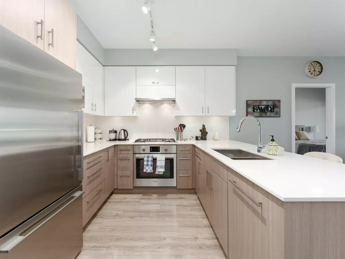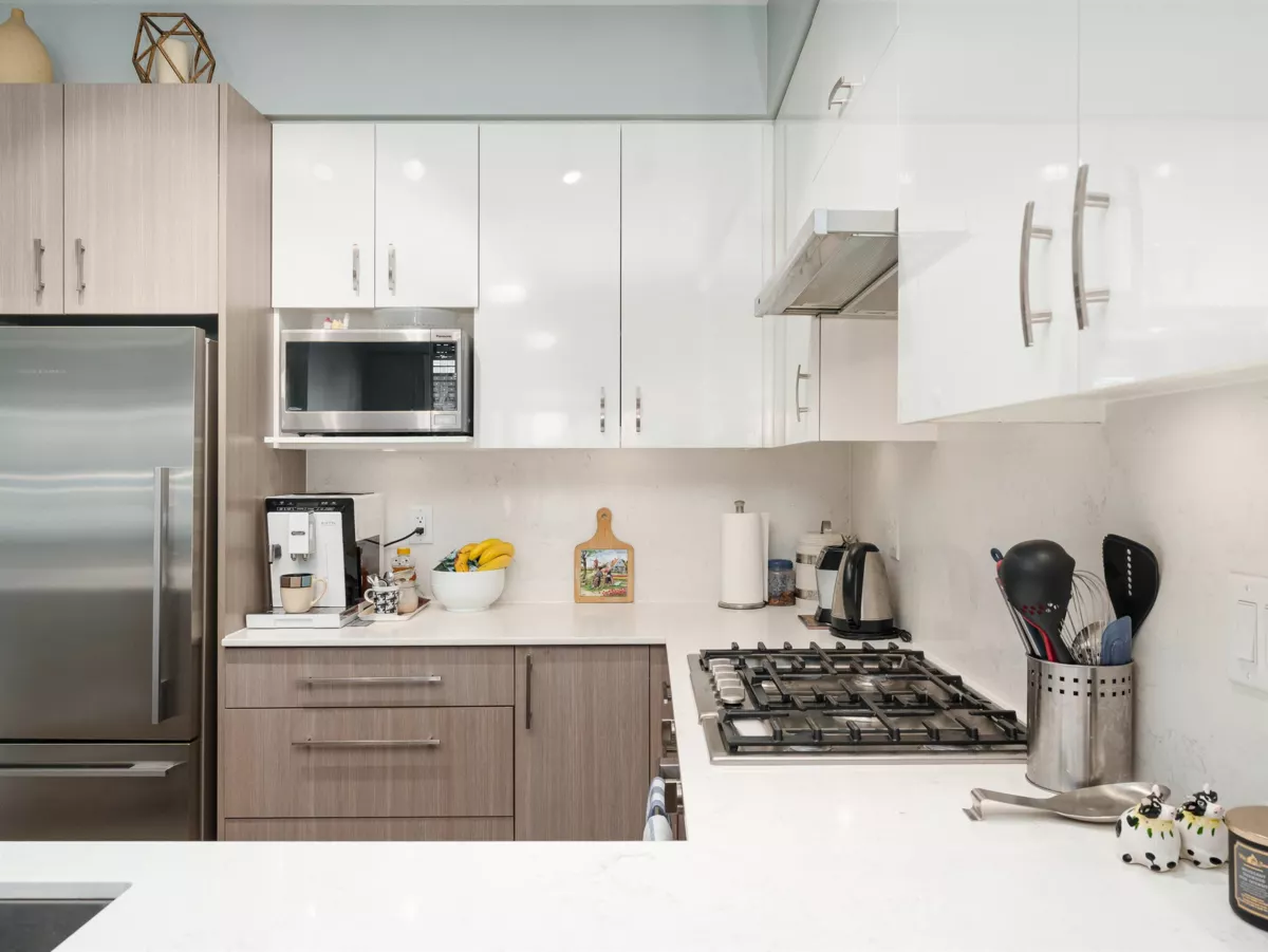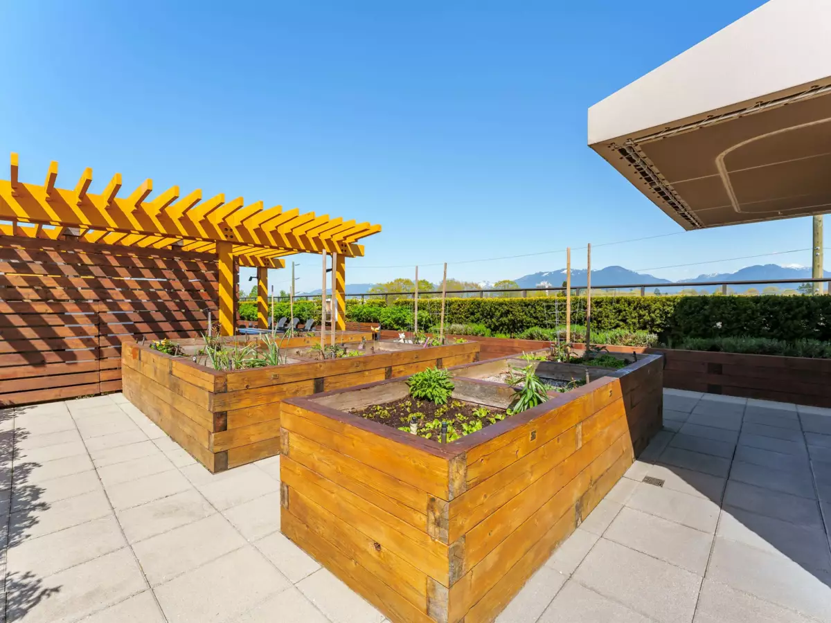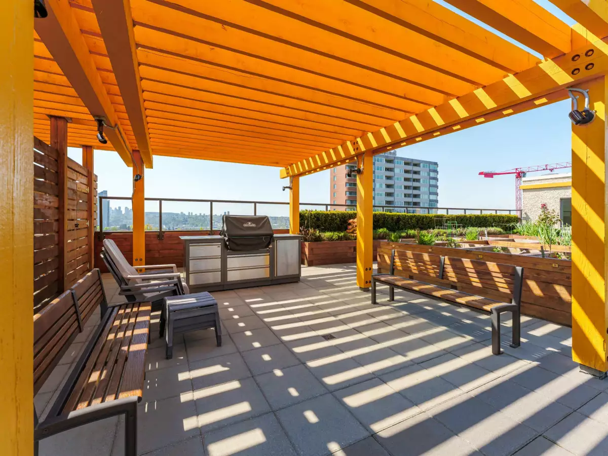 Welcome to VERDI in one of North Burnaby’s most desired neighborhoods. Step into elevated living with this beautifully designed North-facing 2-BED + DEN, 2 Bath home in the heart of Burnaby Heights. Featuring a bright & open layout with 9' ceilings, this residence is the perfect blend of style & function. You'll love the wide plank real hardwood flooring, Euro-inspired quartz countertops in both the kitchen & bathrooms & premium appliance package including a Bosch oven & gas cooktop, Fisher & Paykel fridge & Kohler fixtures throughout. Enjoy outdoor living with an XL 170 sqft deck—ideal for entertaining. Located steps from transit, Confederation Park, Safeway, Cioffi's, Red Apple & much much more! 1Parking/Storage & Garden Plot on rooftop terrace included.