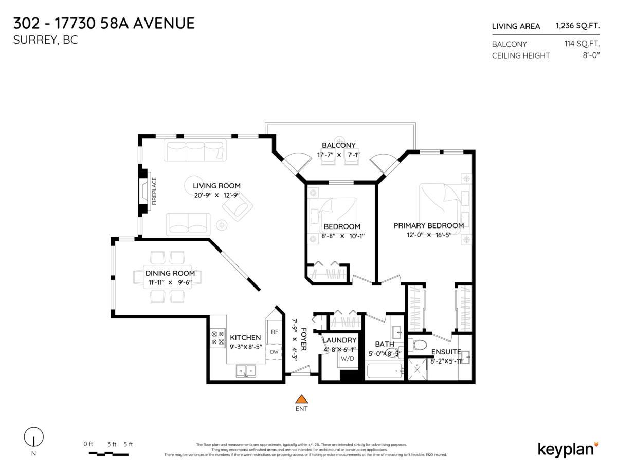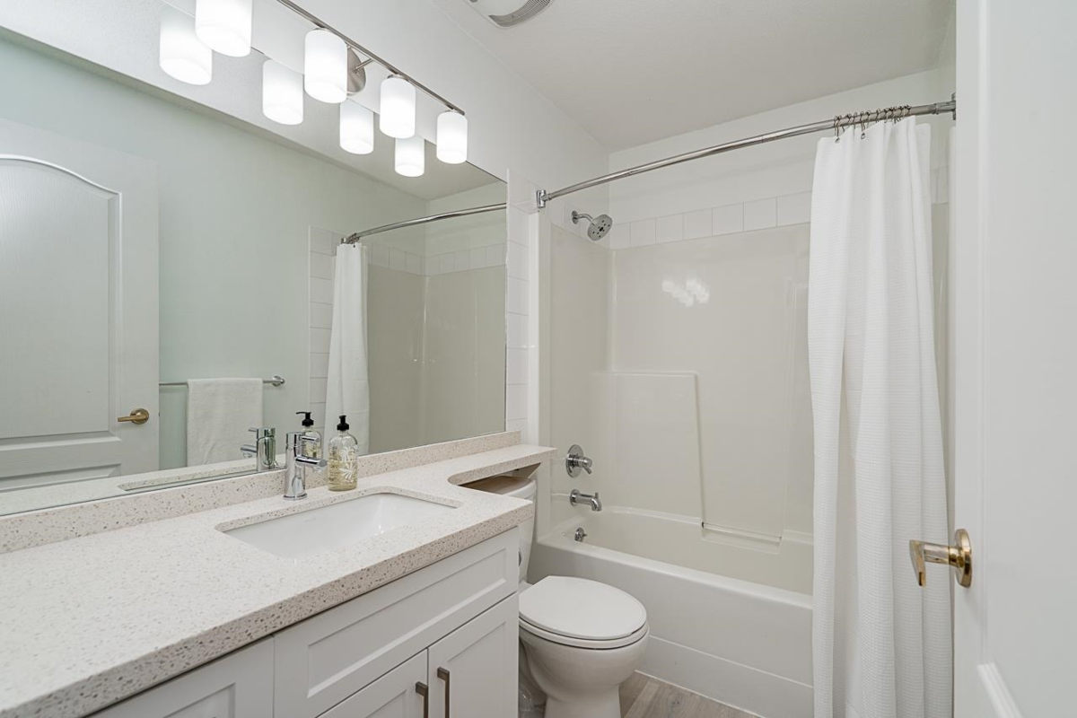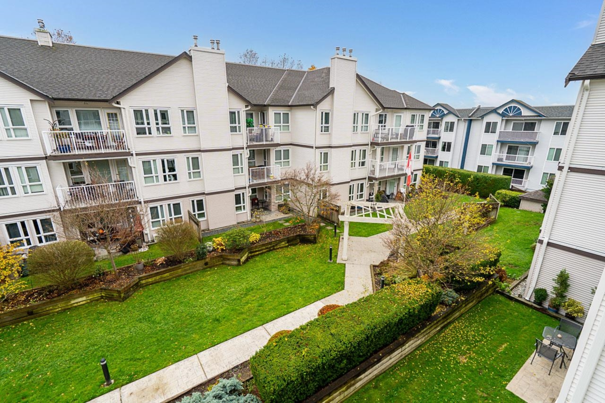 Spacious and bright 2-bedroom, 2-bath condo offering 1,236 sq. ft. of updated living in central Cloverdale. Features include a modern kitchen, refreshed bathrooms, new paint, laminate flooring, and radiant heat. Large windows fill the open layout with natural light. Enjoy a private balcony facing the peaceful courtyard—perfect for relaxing. Situated in a well-maintained, highly regarded strata close to shops, parks, and transit, this home offers comfort, convenience, and move-in-ready appeal.