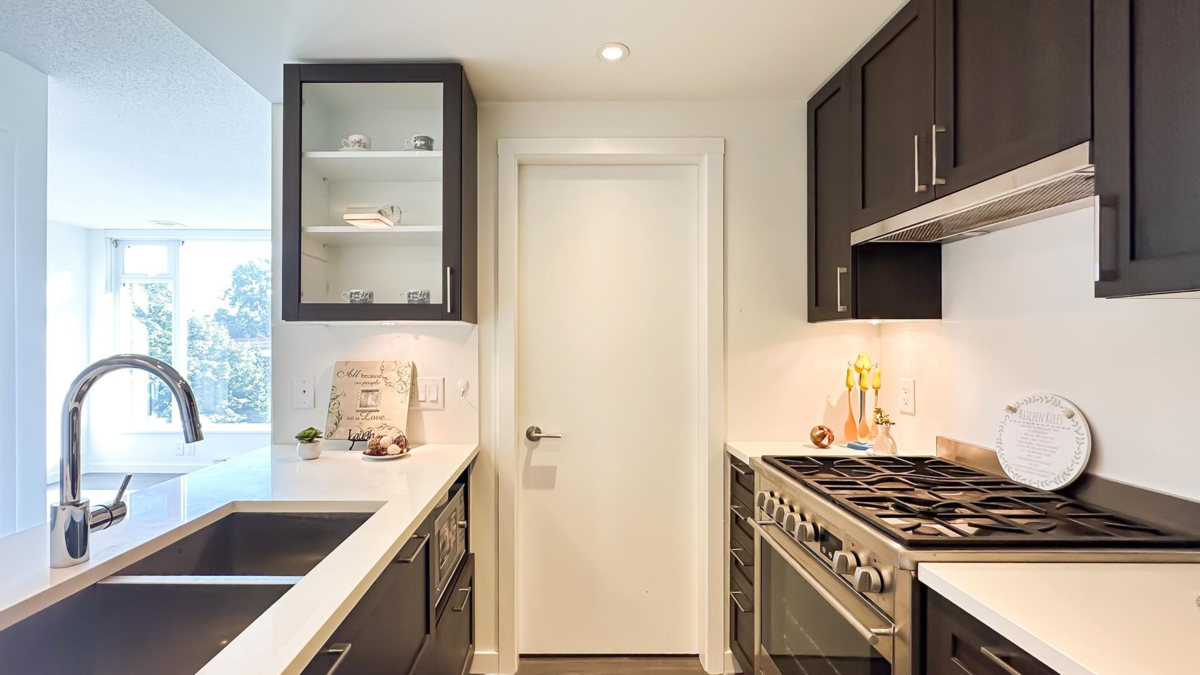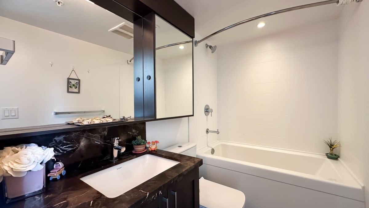 Amazing 1 bedroom + 1 den corner unit at WALL CENTRE CENTRAL PARK located in the prestigious neighborhood of Collingwood. It offers functional layout with bright living/dinning area, dedicated office space (also can be used as in-suite storage), good sized balcony, and walk-in closet. The home features floor to ceiling windows, laminate flooring throughout, shaker-style cabinetry, quartz/marble countertops, and stainless steel appliances including gas range. Amenities include fitness centre, in-door swimming pool/hot tub, meeting room, and rooftop garden. Mins walk to skytrain station, bus stops, restaurants, shopping stores, Burnaby Central Park and more. Come and see! Open house: Sat (Nov 1) 2-4 pm