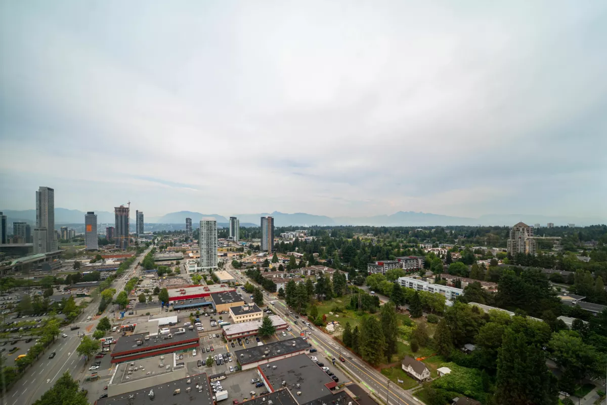 Views! Northeast exposure - 2 bedroom & 2 bathroom at Infinity Tower in Surrey City Center. Unobstructed views of the mountains from SFU Burnaby Mountain to Golden Ears! Steps to the King George Skytrain, SFU Surrey Campus, Surrey Memorial Hospital, Surrey Rec Centre, Library, City Hall & shopping. 1 underground parking stall (#174). Pets allowed with restrictions, rentals allowed. An urban village with shops, services & cafes.