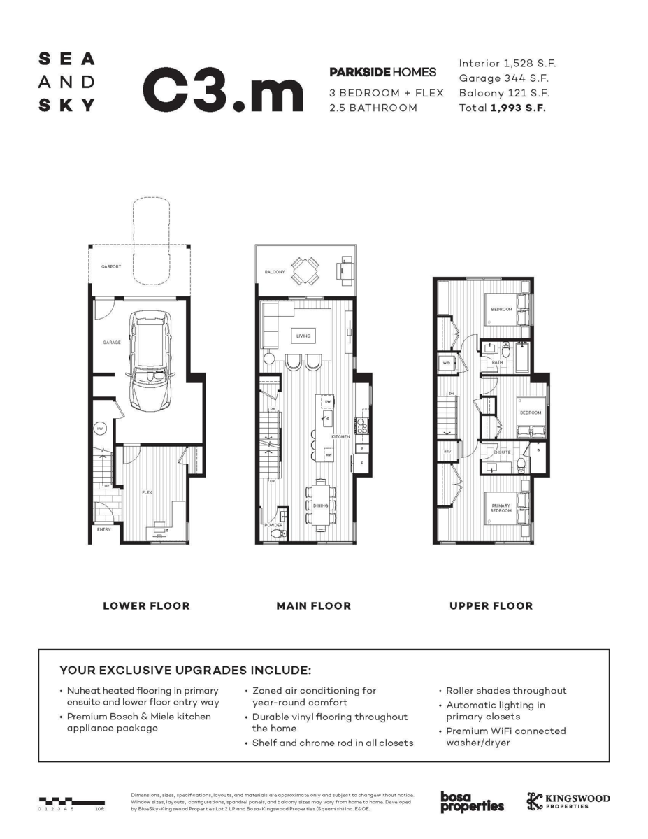 Presenting the final collection of Parkside Homes - the most sought-after location in the desirable SEAandSKY community by Bosa Properties & Kingswood Properties. Located along the shoreline community park, this CORNER 3 bed + flex home is one of only two in the community and has incredible views of the blind channel on one side and the Chief on the other. Premium upgrades include - air conditioning, Bosch & Miele appliances, heated entryways and ensuite washrooms, premium washer/dryer, vinyl flooring throughout and more. Steps away from the future 17,000 sq ft Activity Centre (under construction, completing next summer) and pedestrian bridge to downtown. The bridge is completing this fall! Limited time mortgage buy down offer available. Get in touch for more details!