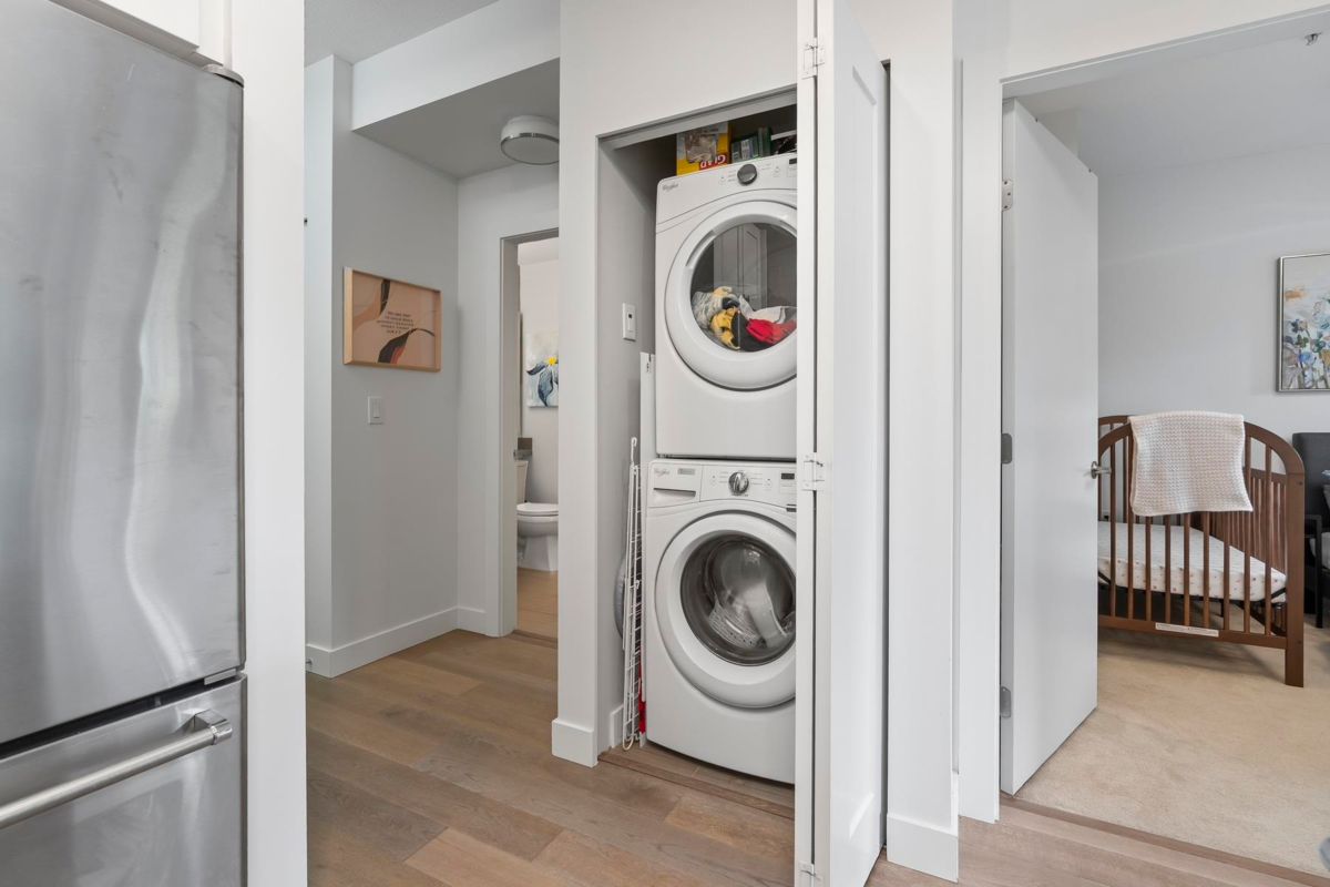 Built by Ledingham McAllister. Lots of privacy, on a quiet street, easy walk to the Skytrain, Lougheed Mall, Cameron Park and Recreation Center (under construction) and Bell Park. This stylish 1-bedroom + den is 665 sq. ft. home plus 73 sq. ft. covered balcony totalling 738 sq. ft. of living. Enjoy a sleek kitchen with quartz counters & stainless steel appliances, an open layout & versatile den perfect for home office or creative space, a modern bathroom with a soaker tub. Pet-friendly, the building amenities: fitness centre, yoga room & playground. Includes parking a large storage locker & EV charging in the building. A welcoming community in the heart of it all!