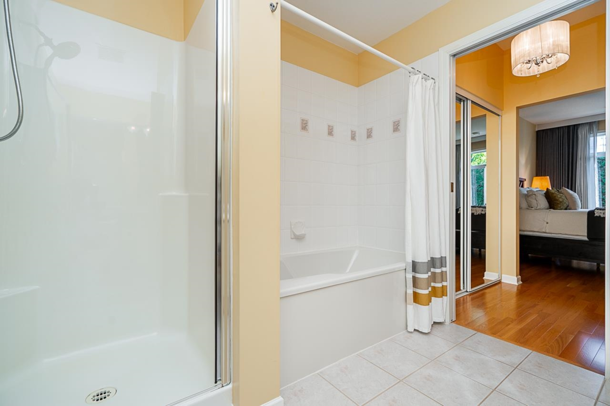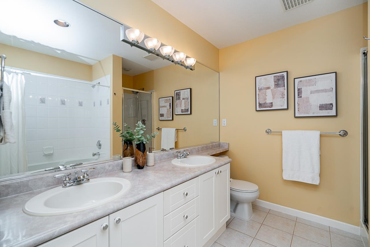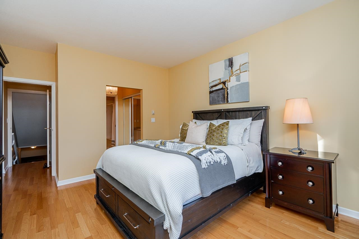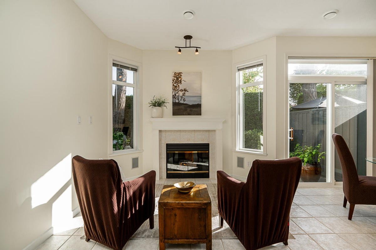 Discover the charm of Ponderosa Station, a private gated community set among mature trees, wide roadways, and open garden spaces. This lovingly cared-for 2-bed, 3.5-bath townhome offers the perfect blend of comfort and convenience, with primary living on the main floor. The spacious primary suite features a walk-through closet and spa-like ensuite, while soaring 18-ft ceilings fill the living room with light. Gather in the bright, south-facing kitchen that opens to a sunny patio with BBQ hookup, ideal for summer evenings. Upstairs, a second bedroom, full bath, and office overlook the living room, while the finished basement adds endless flexibility with a rec room, workshop, and storage. Just minutes to shops, trails, and the beach, you’ll truly feel at home here!