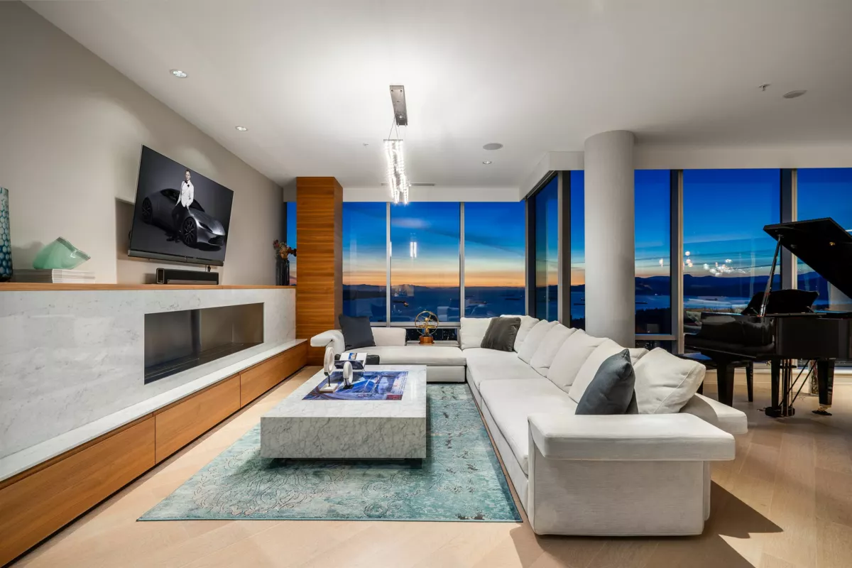 This private Estate Residence at the new Park Hyatt sits 53 floors above the city and defines the ultimate sophisticated lifestyle in the heart of Vancouver’s Luxury Zone steps to the city’s premier restaurants and international boutiques. This redesigned 2 bedroom, 3 bath residence boasts 270 degree ocean, city, and mountain views together with an impeccable choice of quality materials. Features including floor to ceiling windows with Lutron automated blinds, air conditioning, new Italian kitchen with island, breakfast bar, all top grade appliances, media family room, fireplace and built in bar, new white oak engineered flooring and walk out private terrace. Hotel Amenities include 24 hour concierge, valet, resort style swimming pool, gym, spa and secured parking for 2 vehicles.