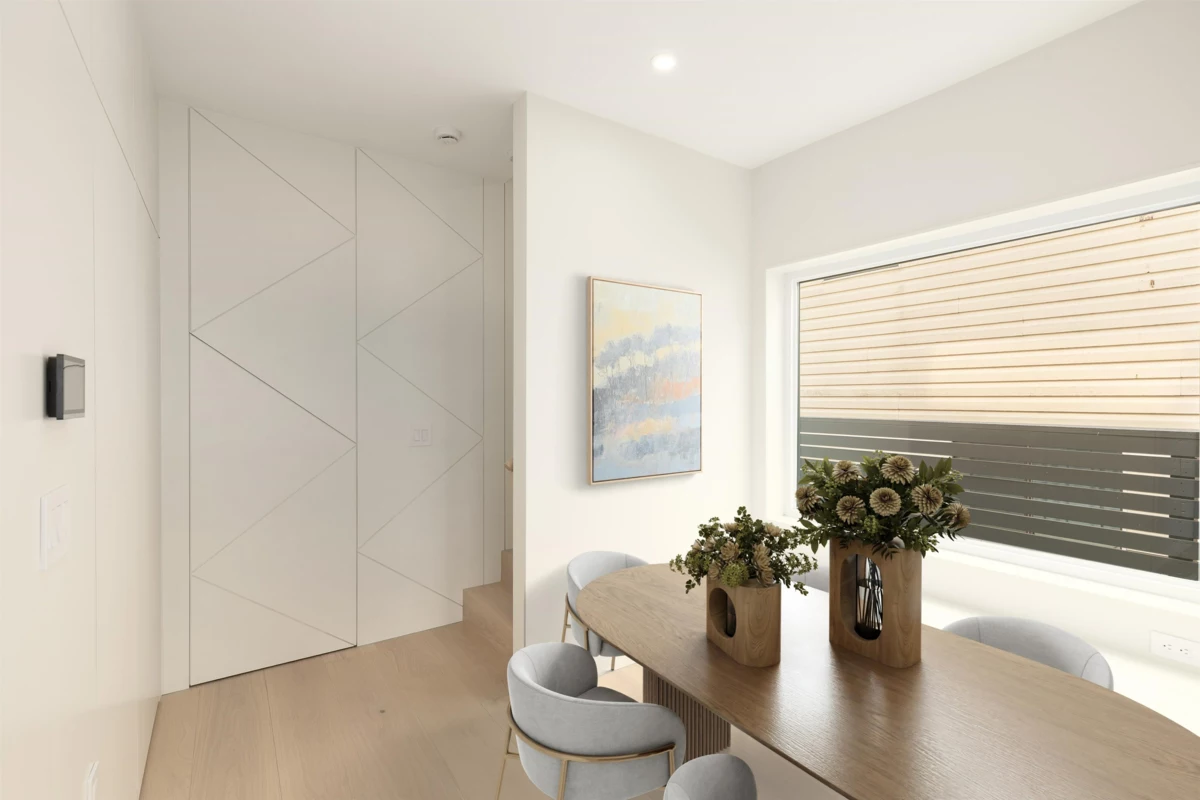 Welcome to Wales Park by VanMosa Properties—an exclusive collection of boutique park side homes offering exceptional quality and craftsmanship, designed by Architrix & built by Glenmark Homes. This 3-bdrm 1/2 duplex sits directly across from Norquay Park & is thoughtfully designed with Caesarstone countertops, white oak custom cabinetry, Fisher & Paykel appliances & Brizo luxe gold fixtures. Additional highlights include air conditioning, automated lighting, in-ceiling speakers, sensor-activated cabinet lighting, soundproofing & crawlspace storage. With parkside & mountain views, stunning natural light, and a layout that balances elegance with everyday functionality, this is a rare opportunity to own in one of East Vancouver’s most connected and walkable neighbourhoods.