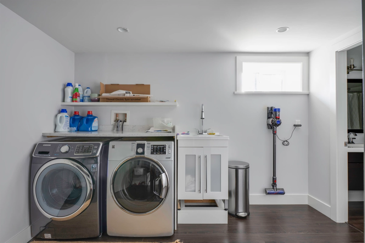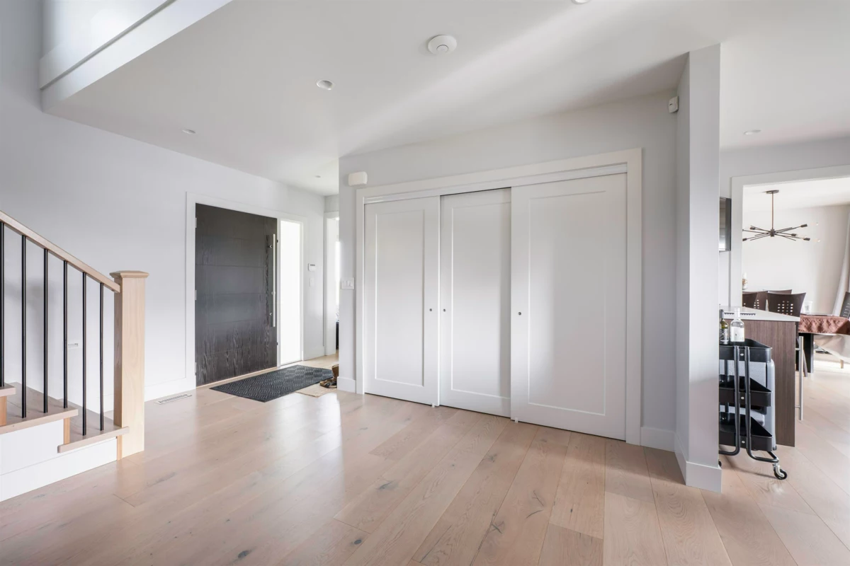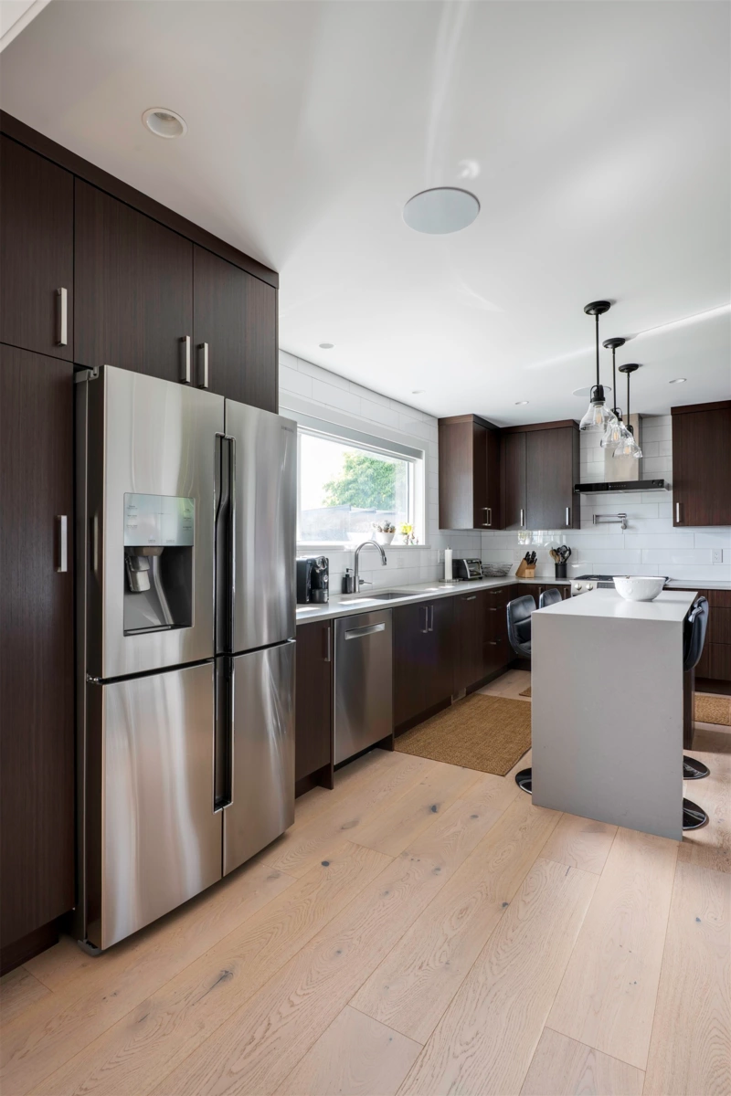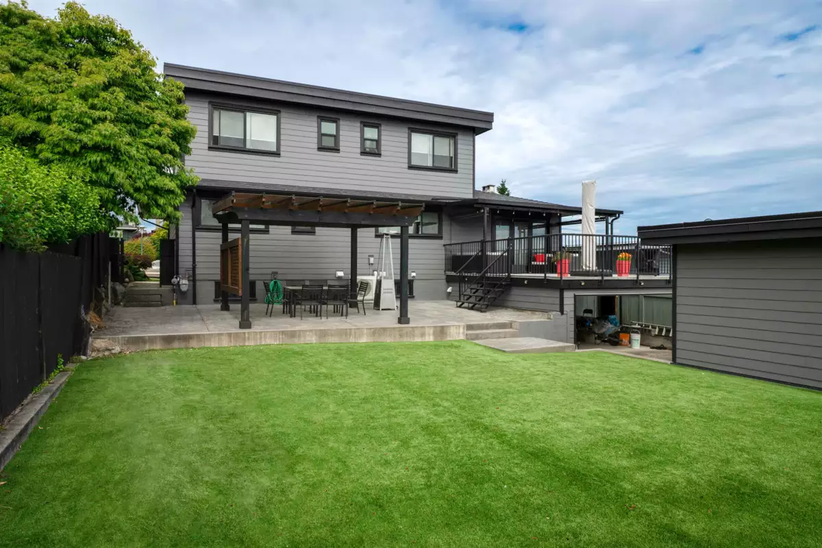 Rebuilt family home in the heart of New Westminster’s coveted Massey Heights. Taken down to the studs and reimagined in 2017, this 3,391 sqft home offers modern comfort with timeless design. The main floor showcases rich hardwood flooring, a chef-inspired kitchen with high-end appliances, and seamless access to a large entertaining deck. Upstairs features three spacious bedrooms including a luxurious primary suite with walk-in closet and spa-like ensuite. Stay cool year-round with central air conditioning. The full-height basement includes a generous rec room, two additional bedrooms, flex space, and suite potential – ideal for extended family or income support. Enjoy a summer-ready backyard with artificial turf, perfect for kids and pets. Detached double garage that is prepped for EV.