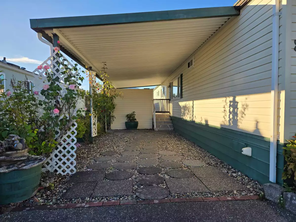 Embrace easy, comfortable, low-maintenance living in the desireable Rainbow Estates, 40+, secure, gated community! You'll love the peaceful, well-kept neighborhood with a large, active clubhouse, convenient on-site RV parking & scenic mountain views, centrally located near Eagle Landing Shopping, the hospital, grocery stores & Hwy 1. This bright 2 bed, 2 bath home offers an ideal layout with bedrooms on opposite sides, each with their own 4-pc ensuite with bathtub. Features include central Air Conditioning, metal roof, covered carport (25'x11'), covered patio (12'x11'), detached shed/workshop (11'x7.5'), & an easy, low maintainance yard. 2 pets welcome. Lease extended to 2072, pad rent $495/month. New silver label & electrical upgrades completed with permit. Quick possession available!