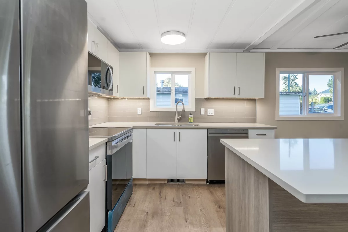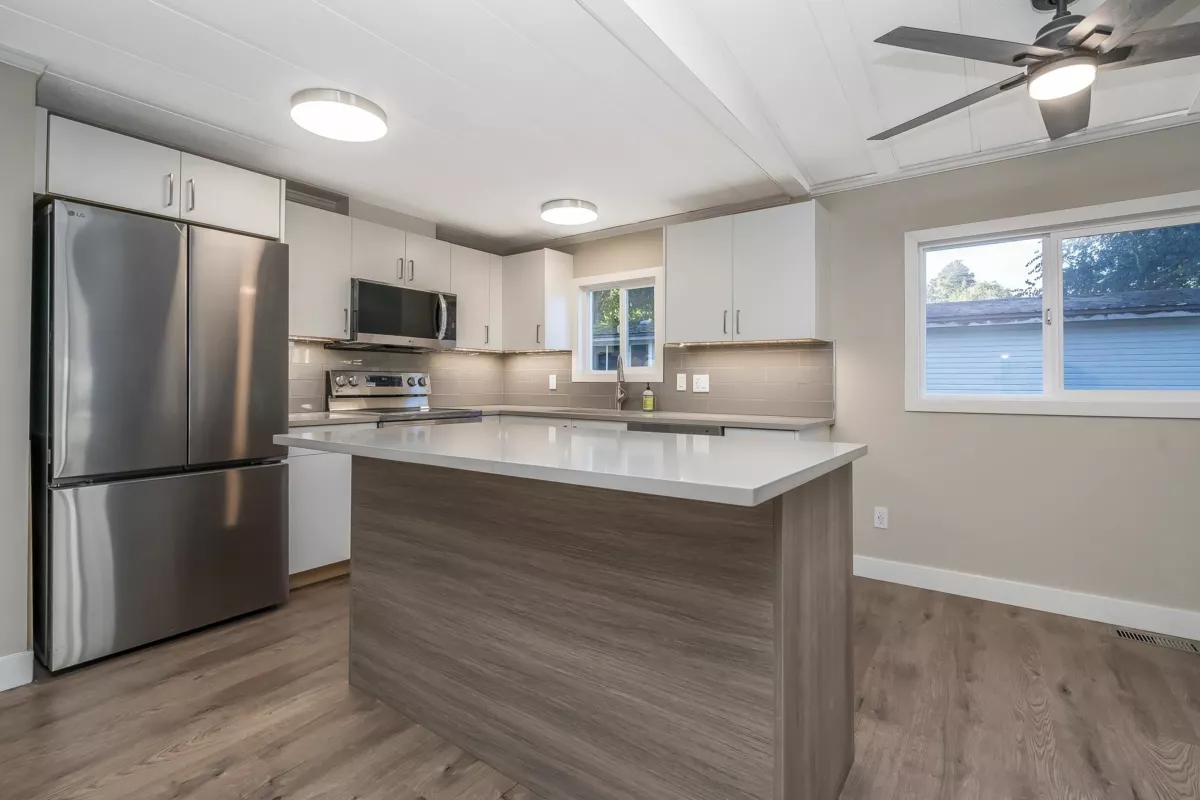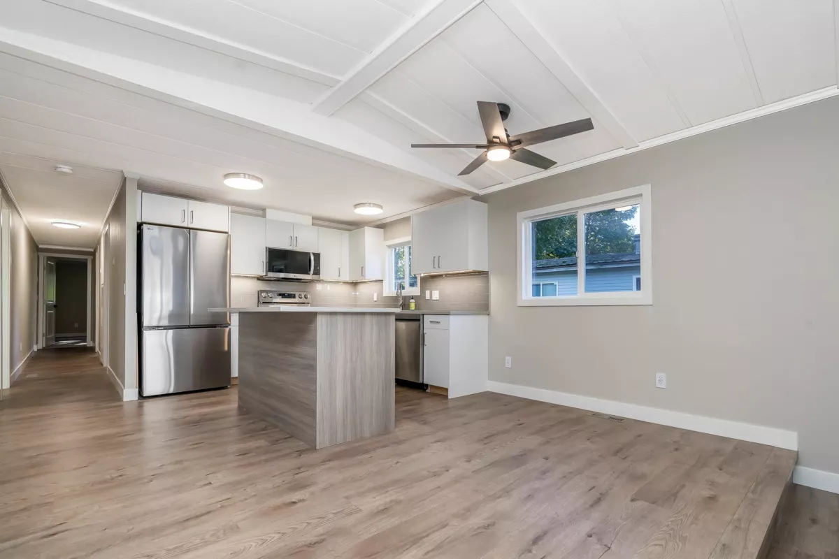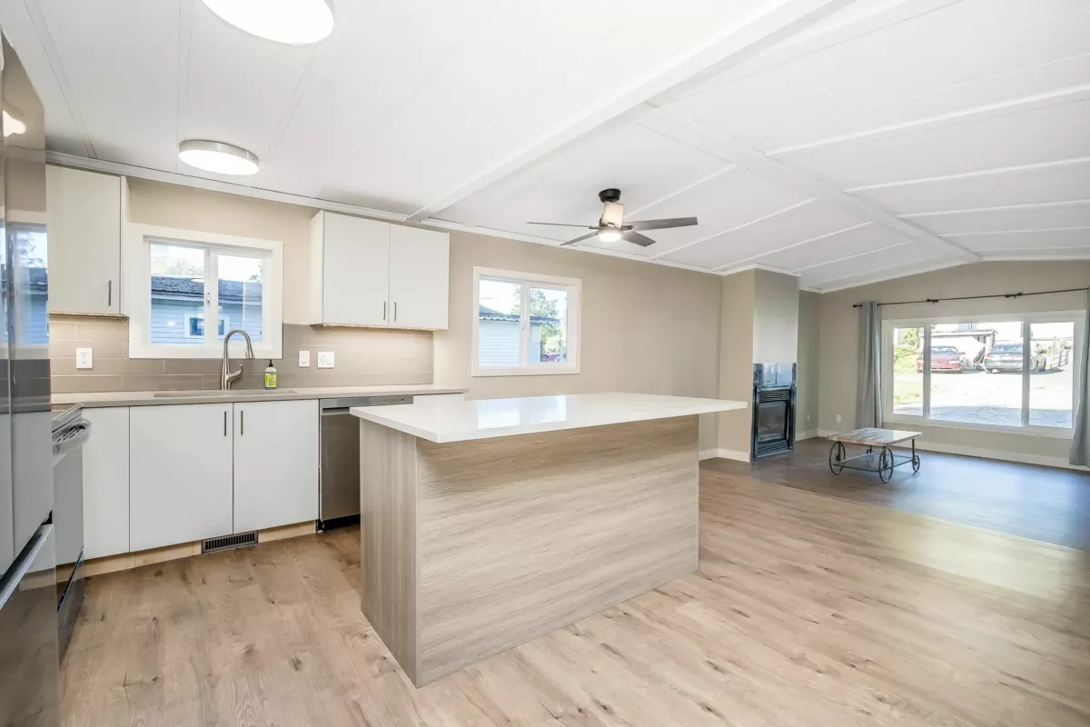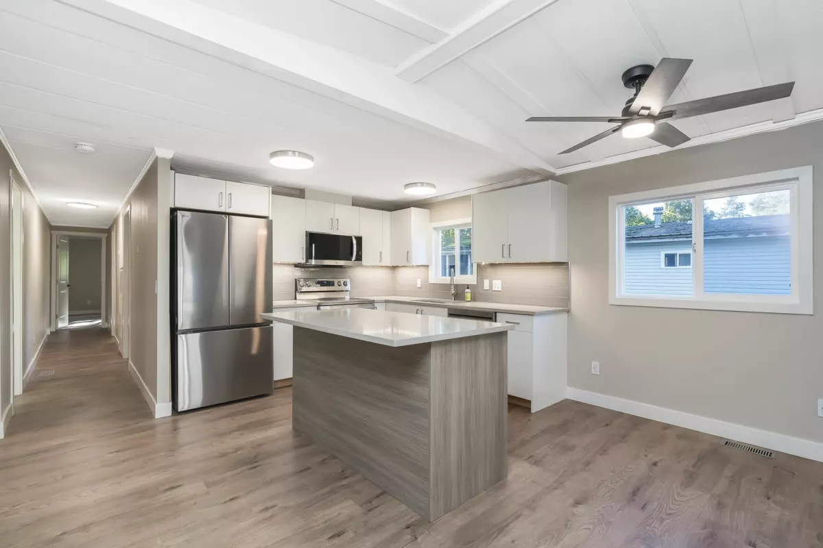 Best Mobile Home in the Fraser Valley! This beautifully updated home sits on a large lot and offers 3 bedrooms and 2 full bathrooms, including a spacious living room and family room. Features include a propane fireplace, stunning kitchen with quartz countertops, new stainless steel appliances, and a center island with eating bar. Enjoy peace of mind with a new steel roof and siding, plus two patio decks, ample parking, and a separate garden shed for extra storage. Pad rent is just $430/month. Hurry—this one won’t last! Immediate possession available!
