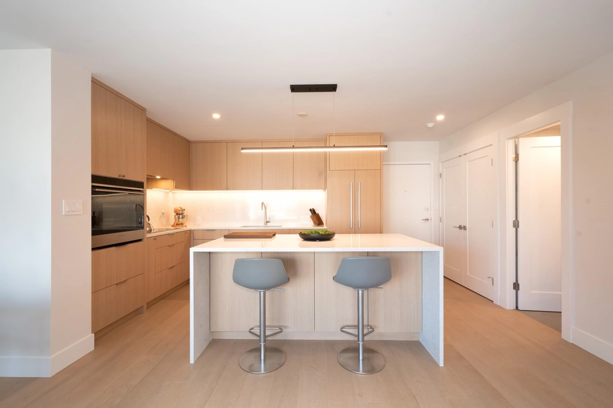 Welcome to Stanley Park Place, an iconic gem in the heart of the West End. This meticulously redesigned suite nestled West of Denman, exudes luxury and grandeur. The gourmet kitchen showcases Fisher & Paykel appliances, pristine white oak cabinets, paneled fridge, dual dishwashers, induction stove, and an oversized island with stunning waterfall edge. The rooms are generously proportioned exuding an air of sophistication from the refined Lutron lighting to the white oak flooring and the grace of Hunter Douglas shades. Both bathrooms provide a spa-like experience with heated floors and seamless showers. Two parking spaces and heated locker add the finishing touches to this flawless package. Walk, bike, or blade to Stanley Park, miles of Sea Wall, Coal Harbour and the best restaurants.