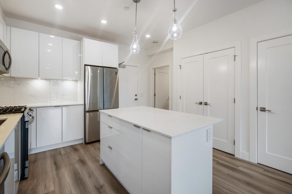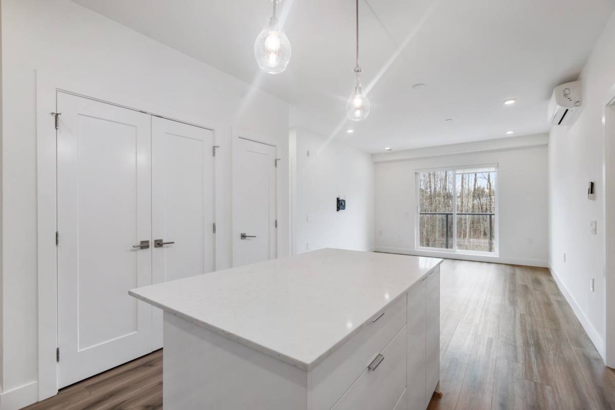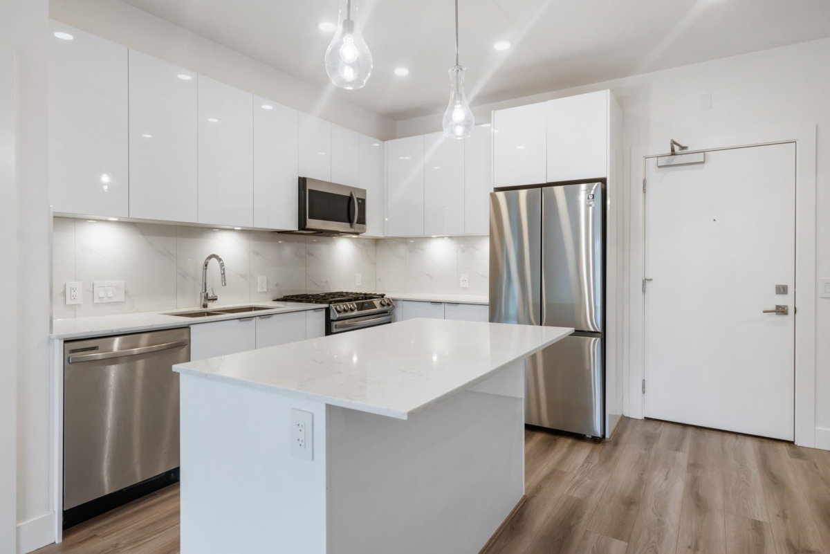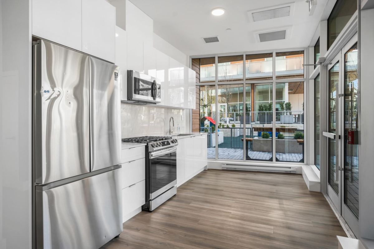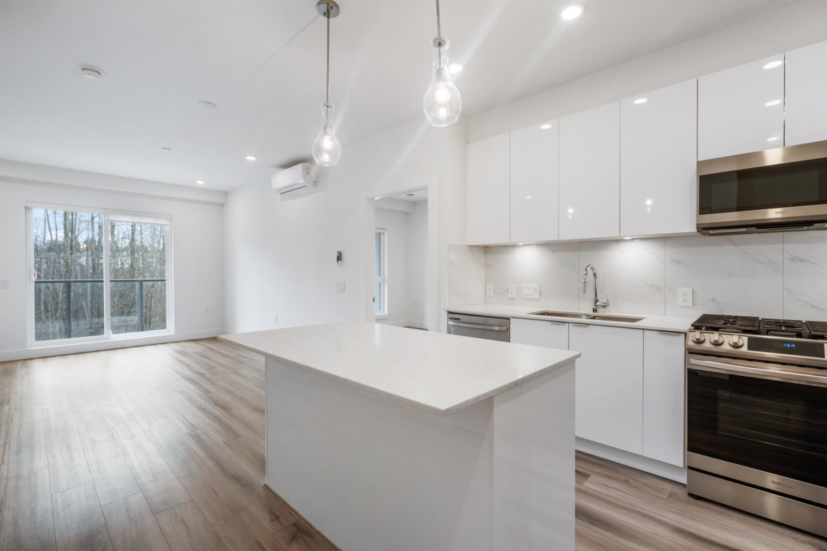 Bright & Spacious and with a Large East-Facing Balcony. Welcome to Aristotle Living! This 3-bed, 2-bathroom home is perfect for young families, featuring a flexible third bedroom ideal for a nursery, child’s room, den or home office. The open-concept layout includes a modern kitchen with a gas stove, stainless steel appliances,& quartz countertops, flowing into a spacious living area with large windows for abundant natural light. Stay comfortable year-round with air conditioning in every room. Step onto the expansive east-facing balcony, perfect for morning coffee, outdoor play, or entertaining. Steps from Carvolth Bus Loop, schools, parks, and shopping.
