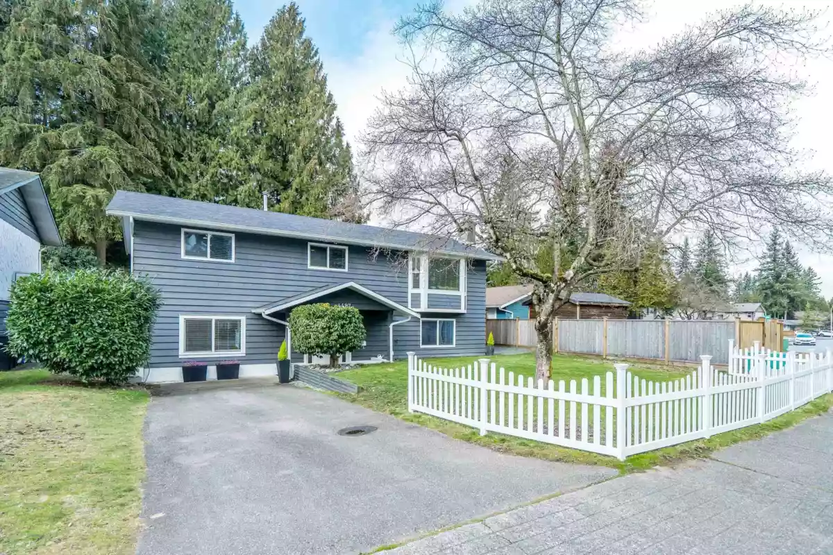Beautifully renovated family home in desirable Brookswood! Bright open-concept main floor with laminate flooring, modern lighting, updated windows, and a stunning quartz kitchen with breakfast bar and quality appliances. Cozy gas fireplace anchors the inviting living space. Upstairs offers 3 bedrooms and 1.5 baths, including a primary with 2-piece ensuite. Downstairs features office/flex space plus a private 1-bed suite with courtyard, ideal mortgage helper or in-law space. Expansive, neatly landscaped backyard with fire pit and room to play. New roof (2025) and furnace (2024). Walk to schools, parks, and recreation—move-in ready! **OPEN HOUSE SATURDAY 2-4**