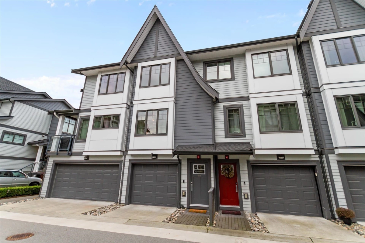 Backs onto tranquil greenbelt with breathtaking views of the Golden Ears, serene pond and natural setting. This sought-after Nature’s Walk by Onni 3 bed, 3 bath, 1,400 sqft townhome offers privacy and resort-style living at its best. Bright open-concept main floor with 9’ ceilings, wide plank flooring, large stone island, gas range, stainless appliances, A/C and tankless hot water. Vaulted bedrooms, spa-inspired primary ensuite with heated floors. Private fenced yard with premium artificial turf. Tandem garage with storage. Access to the 5,000 sqft Meadows Club with pool, gym and lounge. Enjoy peaceful mornings overlooking nature and evenings unwinding in your own retreat. Just a short walk to Osprey Village and scenic river trails.