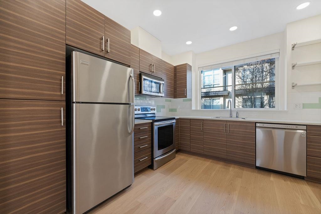 SUN@72 by award-winning Solterra in the heart of Clayton! This beautifully renovated 2 bed, 1.5 bath townhome is truly turn-key with brand new bathrooms, in-floor heating, new flooring, fresh paint, and extra lighting throughout for a bright, modern feel. Inside, the home showcases a clean, modern look with a light-filled open kitchen, and generous rooms framed by large windows that bring in tons of natural light. Thoughtful upgrades include new closet organizers and updated finishes throughout. Enjoy the convenience of a garage with EV charging plus additional parking. Short walk to Katzie Elementary school, fantastic location! Quiet, family-friendly complex with two parks right beside, and close to shops, transit & all amenities.