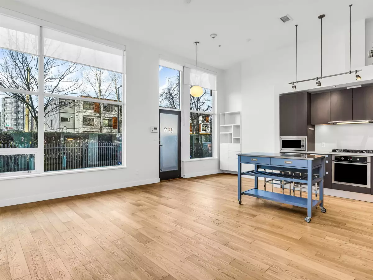 Rarely available in Olympic Village...a townhouse for under $1M! This walk-able Olympic Village location is steps to the Seawall, downtown business district, eateries, breweries, parks and transit. A handy location if you like to live "car-free" in the City...the perfect Pied a Terre. "James" is also pet friendly so it is ideal for walks with Fido. Features you would expect in a modern home include: hardwood floors, full appliances including gas stove, quartz counters, heat pump supplying air conditioning and warmth, flex/den, 2 secure parking and locker, full amenities such as rooftop lounge with kitchen and garden, fitness centre, meeting rooms and concierge. Freshly painted and squeaky clean this home is ready for you to make it your own.