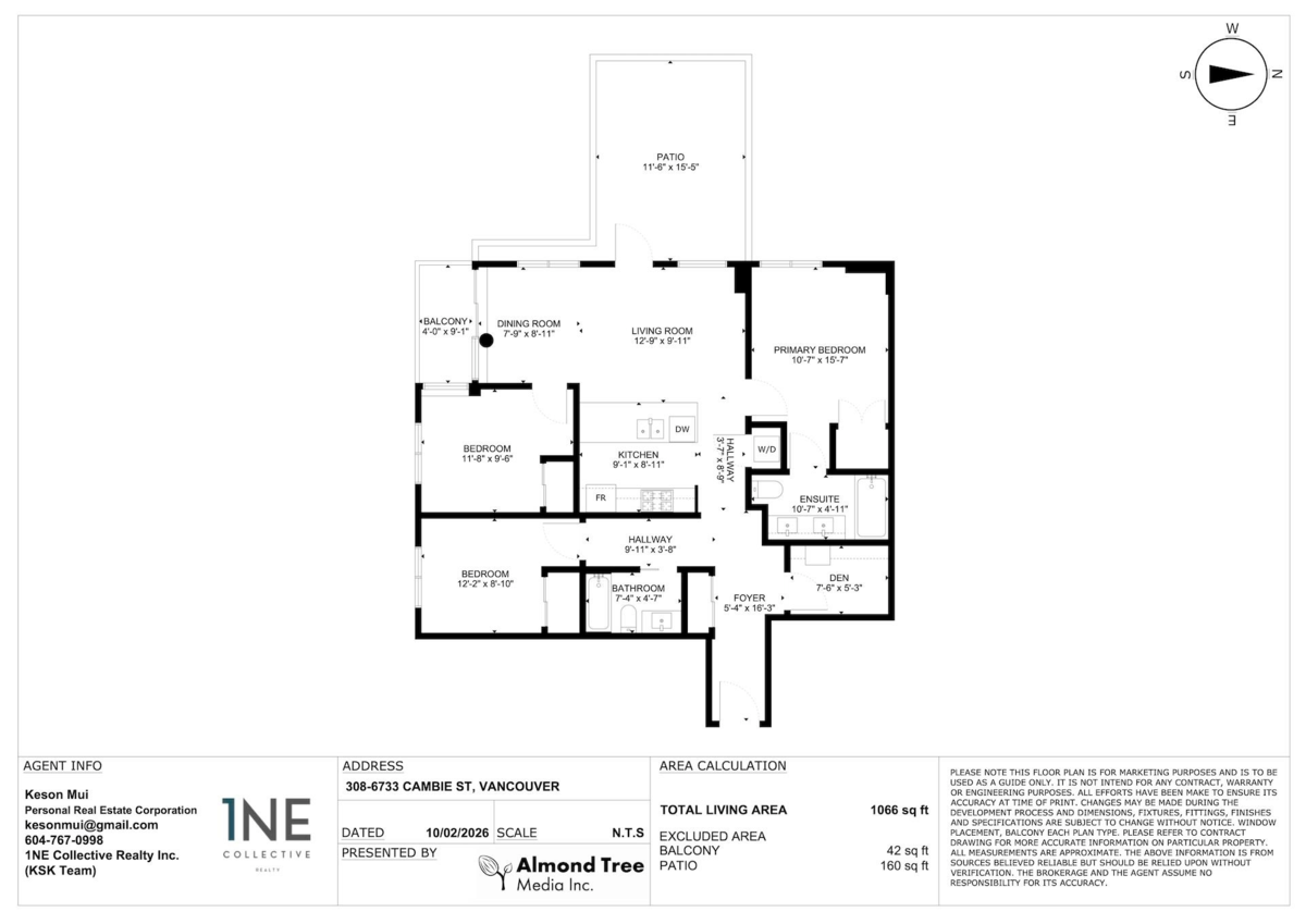 THE CAMELLIA located at Prime Cambie Corridor, steps away from Langara 49th Sky station, Langara Colege, Oakridge Centere, Golf Court, Annie B Jamieson Elementary and Sir Winston Churchill Secondary. This 3 bed plus Den corner unit features 10 ft ceiling, top brand appliances with modern kitchen design, central geothermal heating and ac, best yet this unit is facing away from Cambie with a huge180 sq ft private roof top patio and 2 side by side parking (one already installed an level 2 EV charger), a large locker is also included.